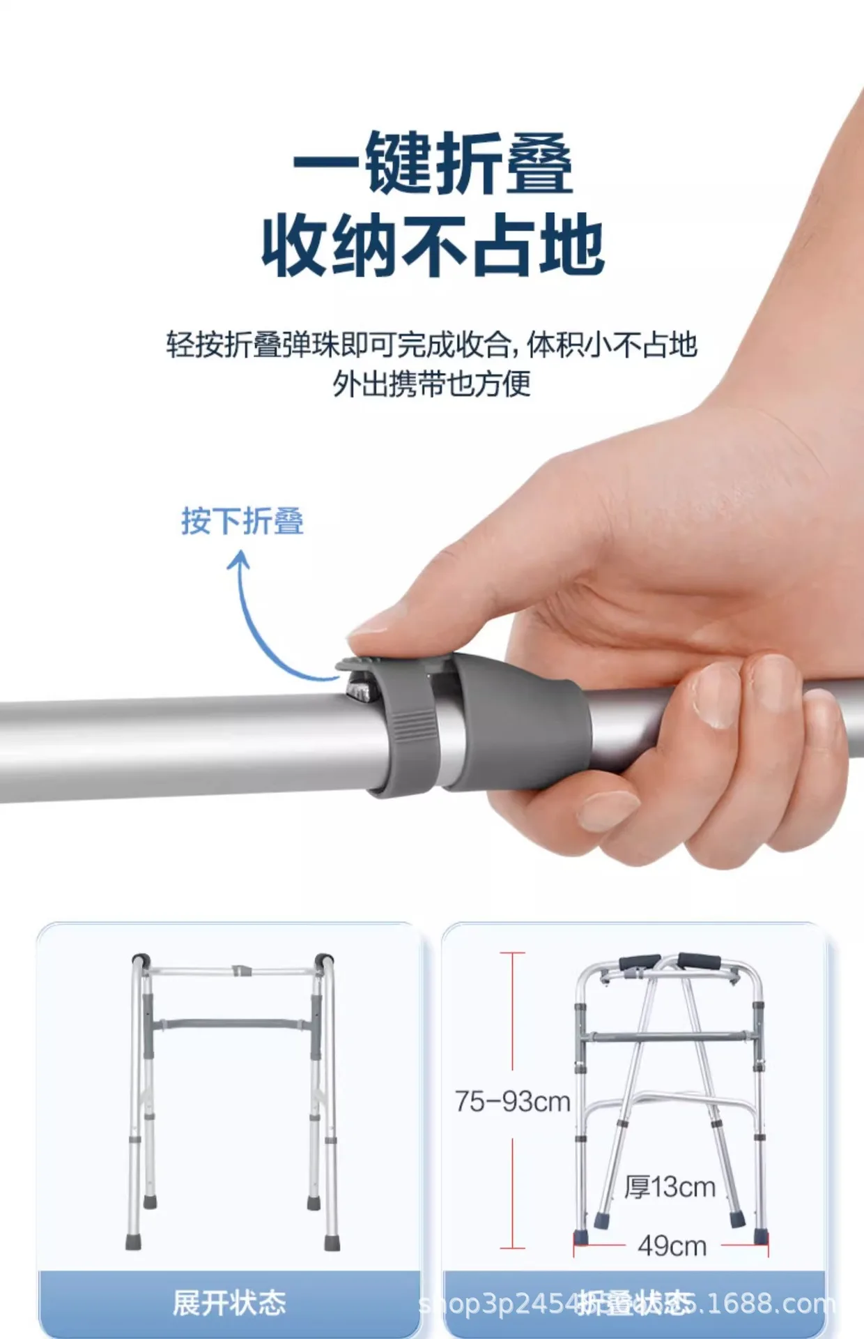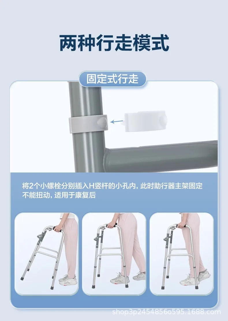 Marcheur pliant en aluminium pour personnes âgées, marcheur de mobilité réglable pour personnes âgées avec 8 niveaux de hauteur, cadre d'aide à la marche léger