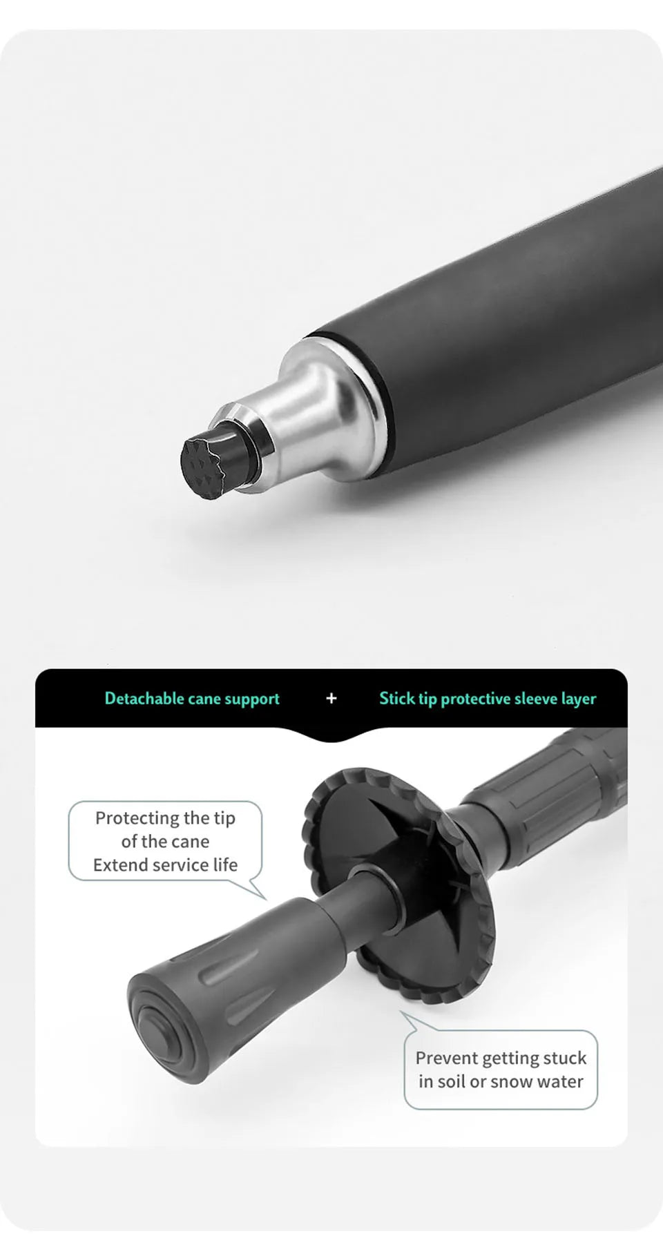 • Pointe du bâton : acier au carbone et au tungstène