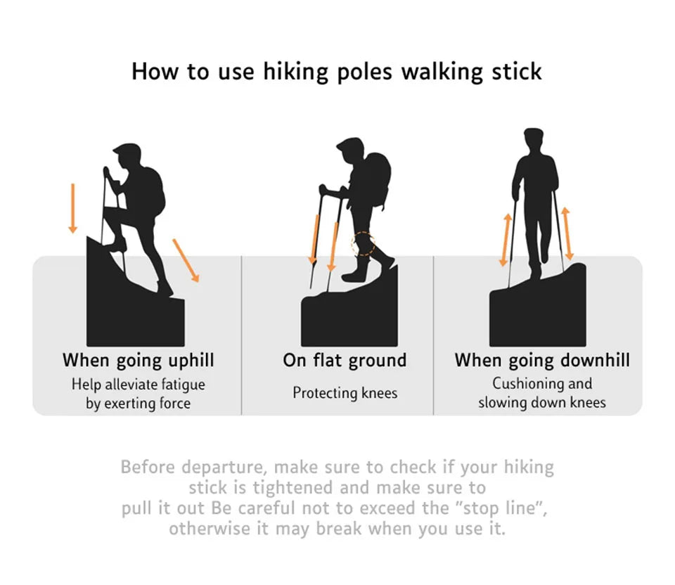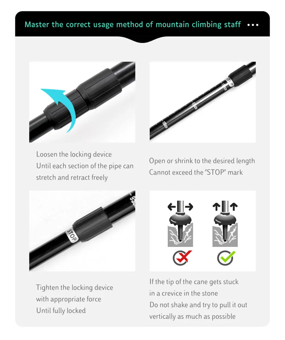 AOLIKES bâton télescopique en alliage d'aluminium bâtons De randonnée bâton De Trekking bâton De marche ultraléger absorbeur canne De marche