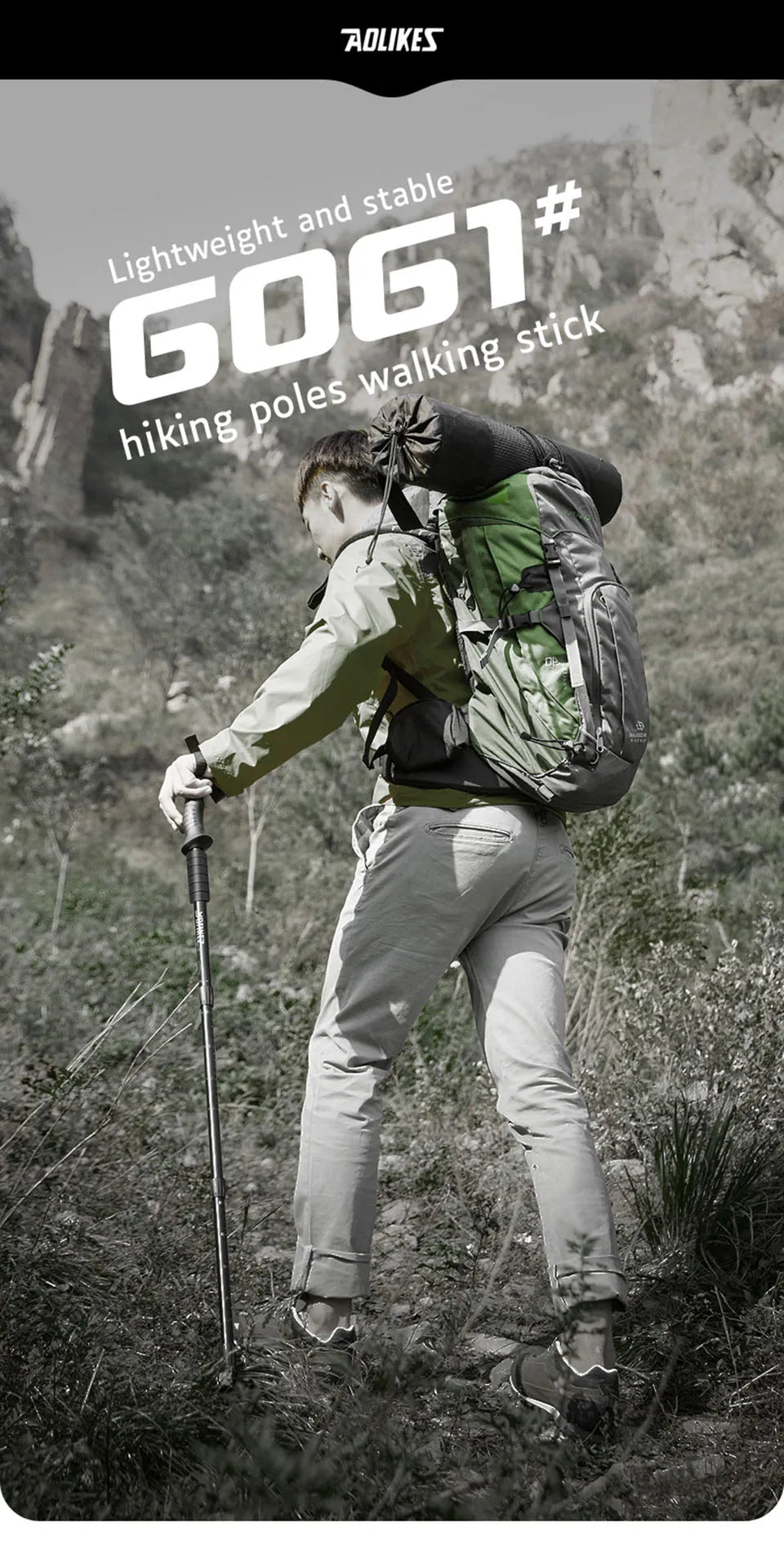 AOLIKES – bâton télescopique en alliage d'aluminium, bâtons de randonnée, bâton de marche, absorbeur ultraléger, canne de marche